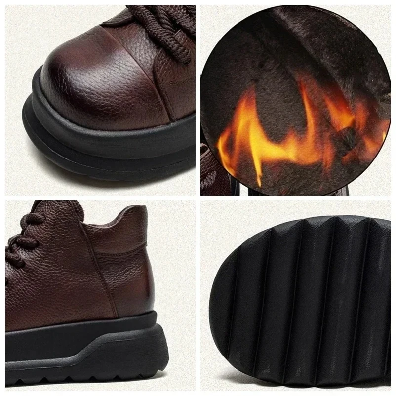 2025 Women Shoes Platform Sandals Genuine Leather New Buckle Strap Print Retro Handmade Concise Leisure Ladies Sandals