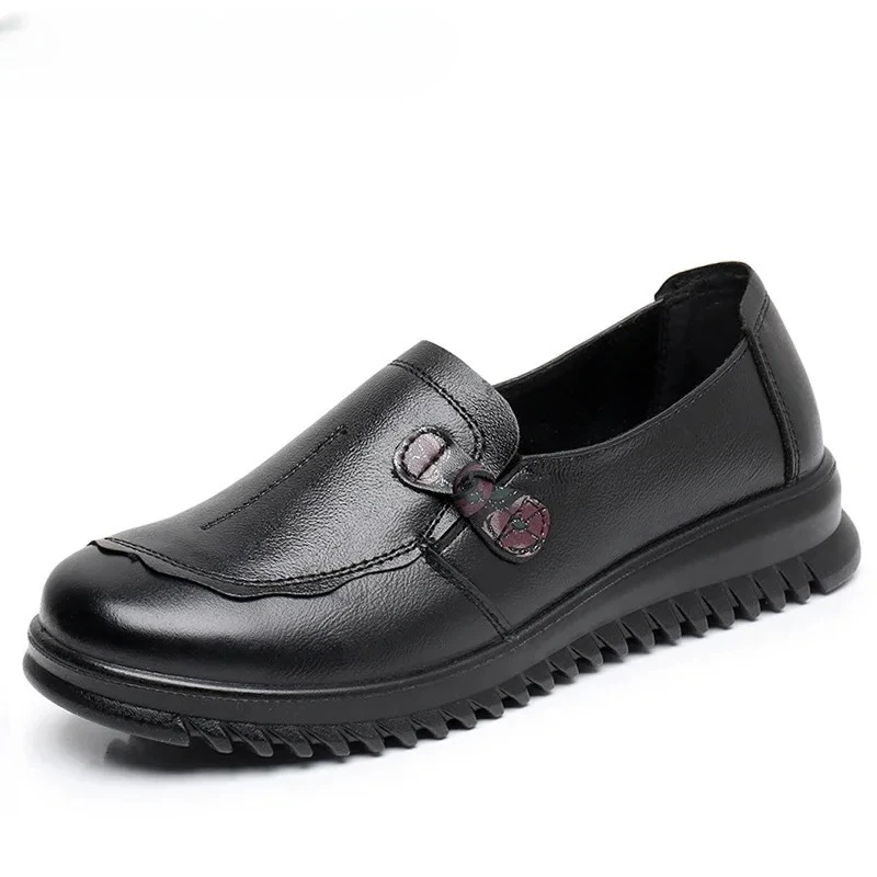 2025 Genuine leather bean shoes for women in spring new soft soled small white shoes, non-slip casual small leather shoes
