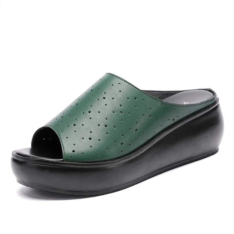 2025 High Heel Women Genuine Leather Casual Shoes Fashion Platform Wedges Shoes Round toe Comfortable Women's Leather