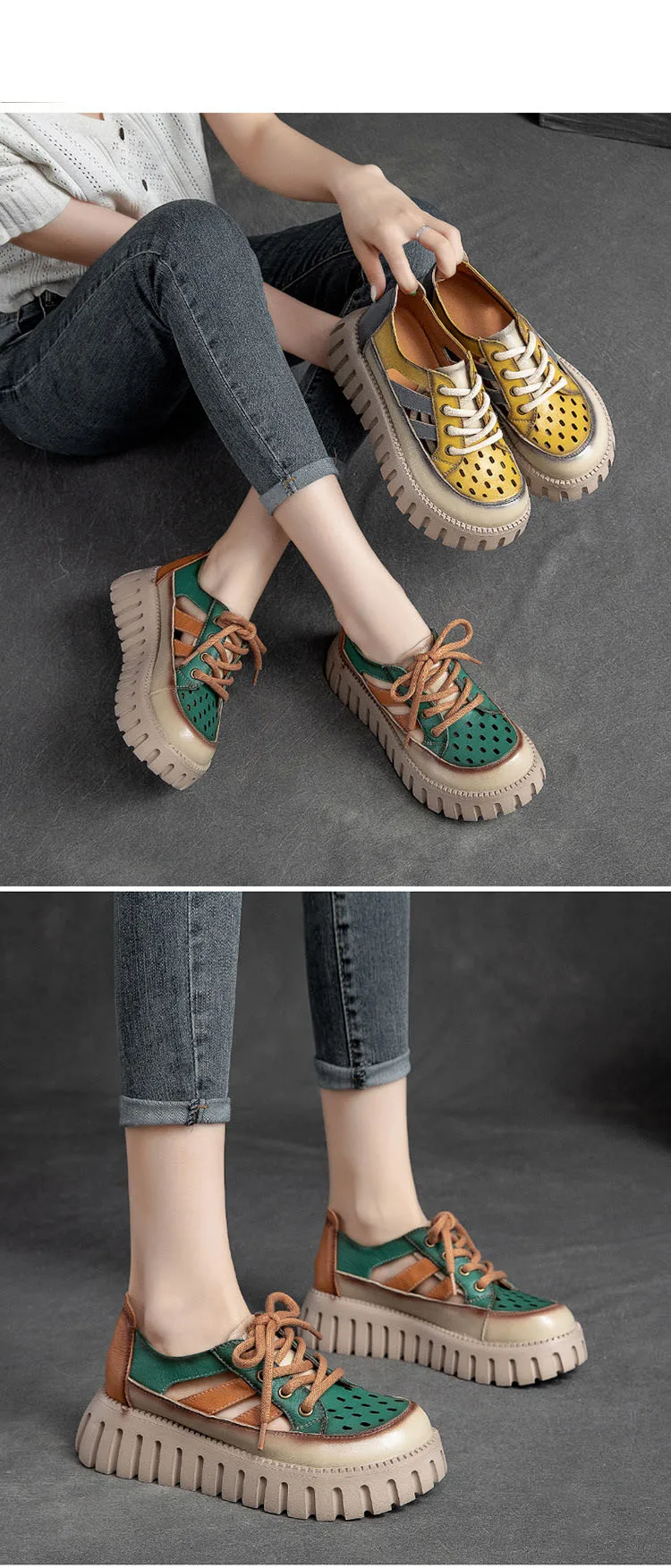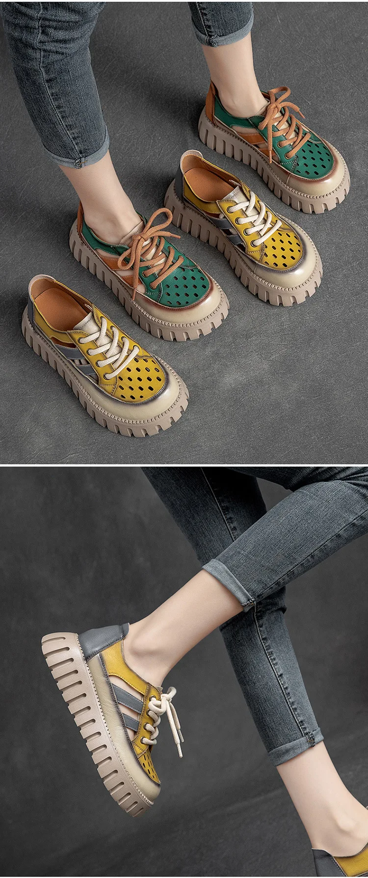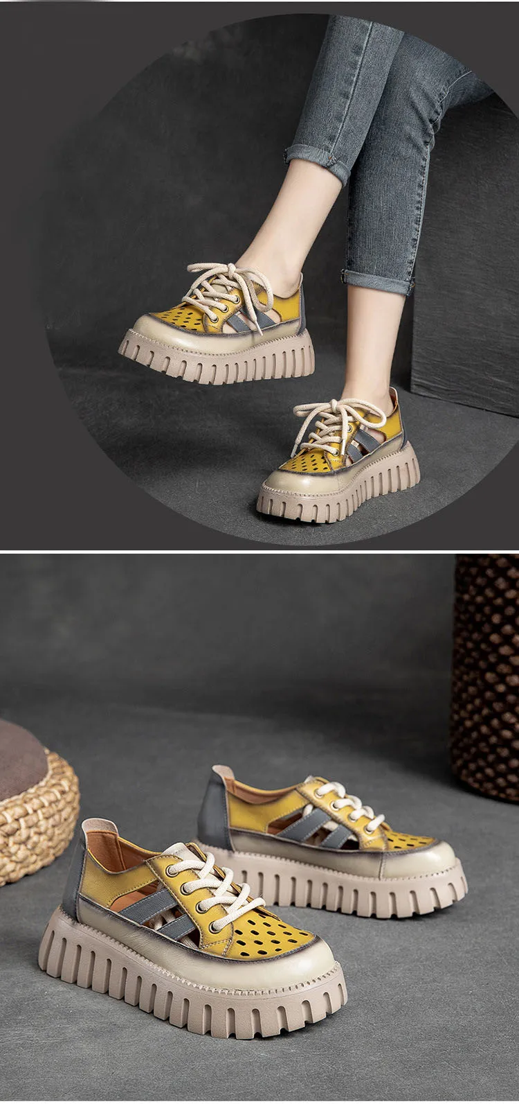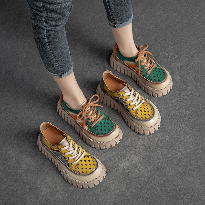 5.5cm Women Sandas Hook Summer Hollow Ankle Flats Breathable Shoes Weave Natural Cow Genuine Leather Boots Comfy Rubber