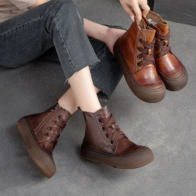 2025 Fashion Women Hollow Sneakers Summer Thick Bottom Mixed Colors Genuine Cow Leather Platform Vulcanized Shoes