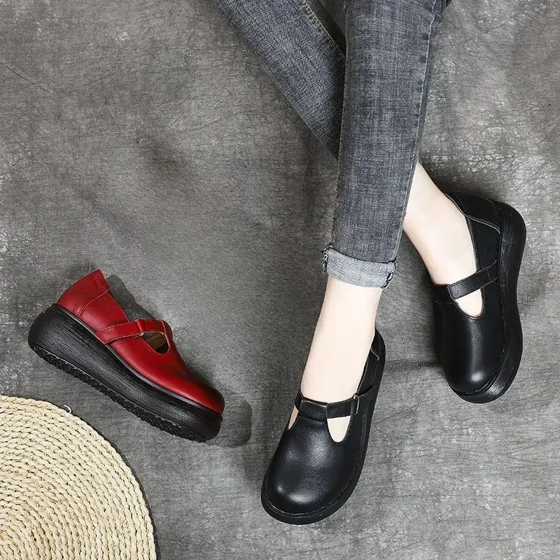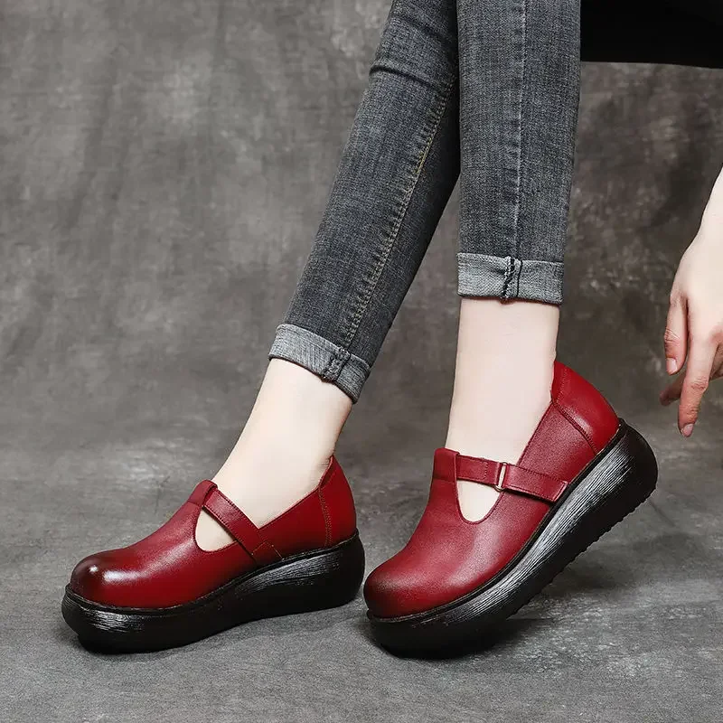 2025 New Summer Retro Genuine Leather Hollow Breathable Floral Outside Leather Women Slippers Platform Wedges Slides