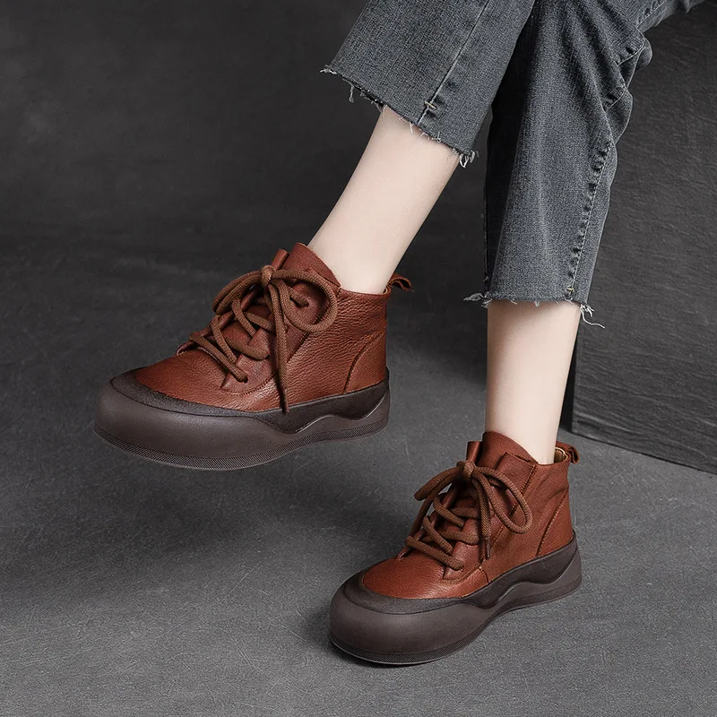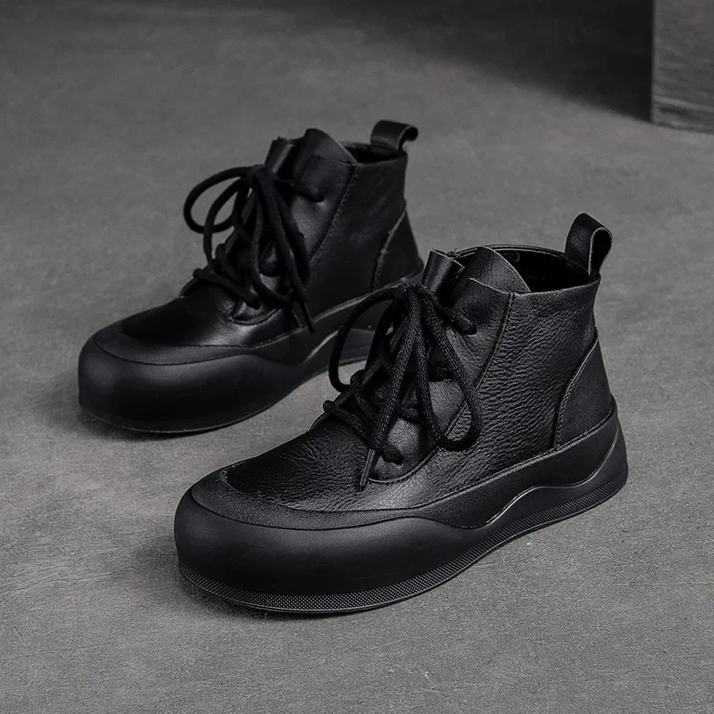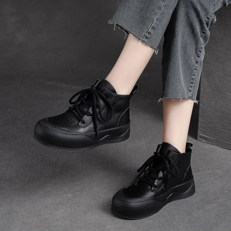 2025 British Style Women Winter Warm Shearling Boots Natural Wool Cow Leather Thick Heel Platform Casual Retro Ankle Boots