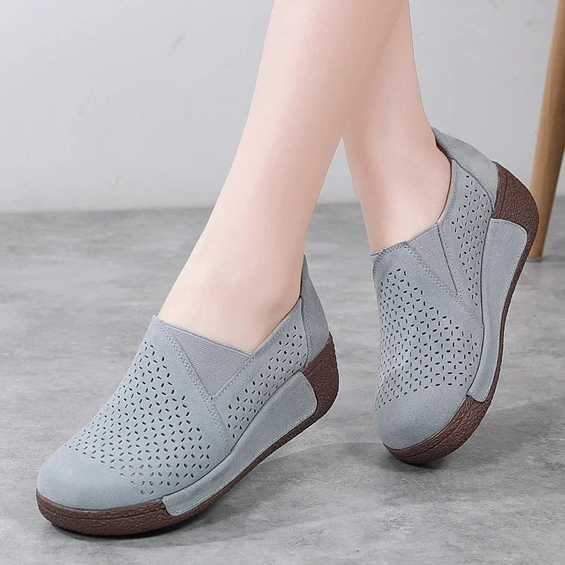 2025 Women spring women flat shoes leather casual moccasins female fashion lace-up moccasins mother shoes comfort shoes