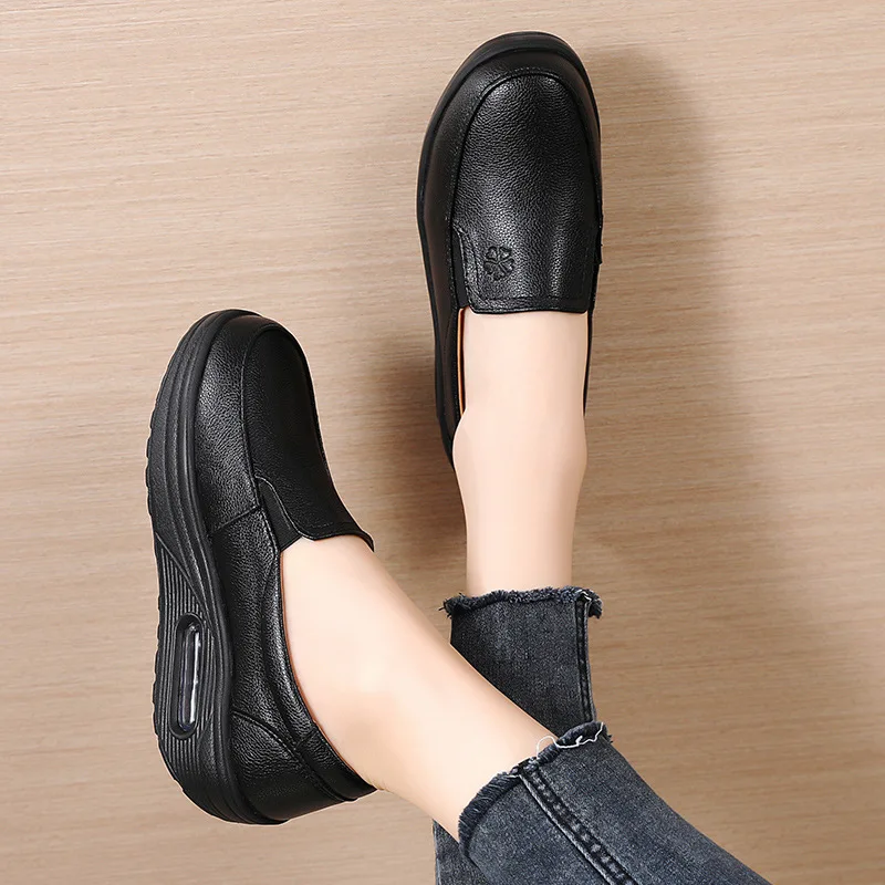 2025 Women's Summer Wear New Leather Thick Sole Soft Sole Wedge Heel Non-slip Women's Sandals