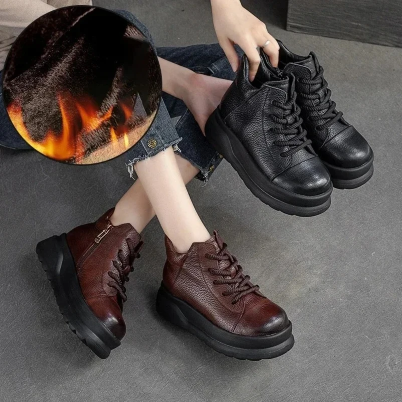 2025 Autumn Winter Shoes Genuine Leather Ankle Motorcycle Boots for Women Thick Sole Women Ankle Boots Ladies