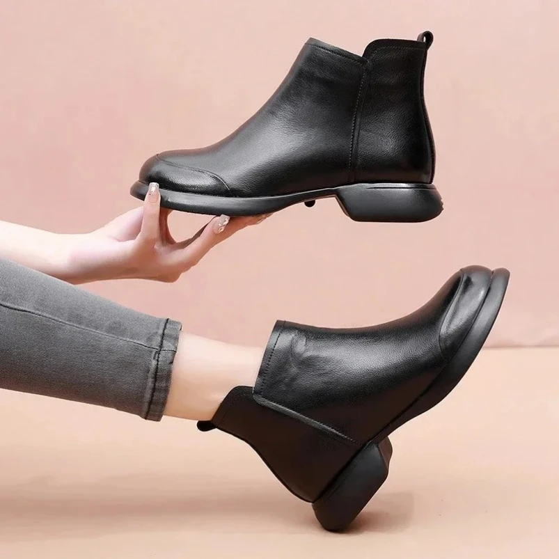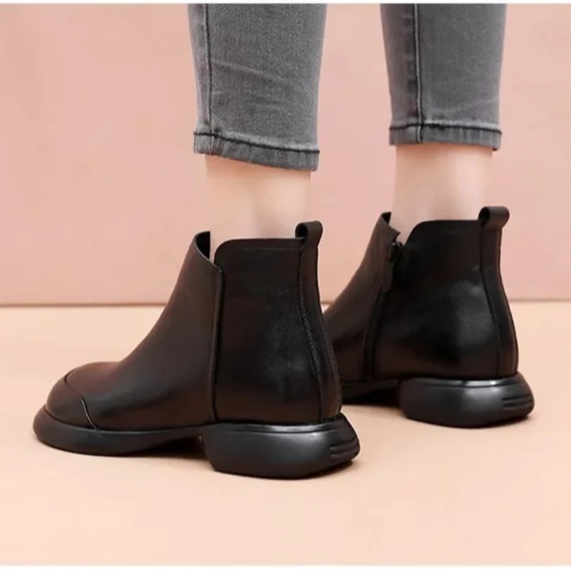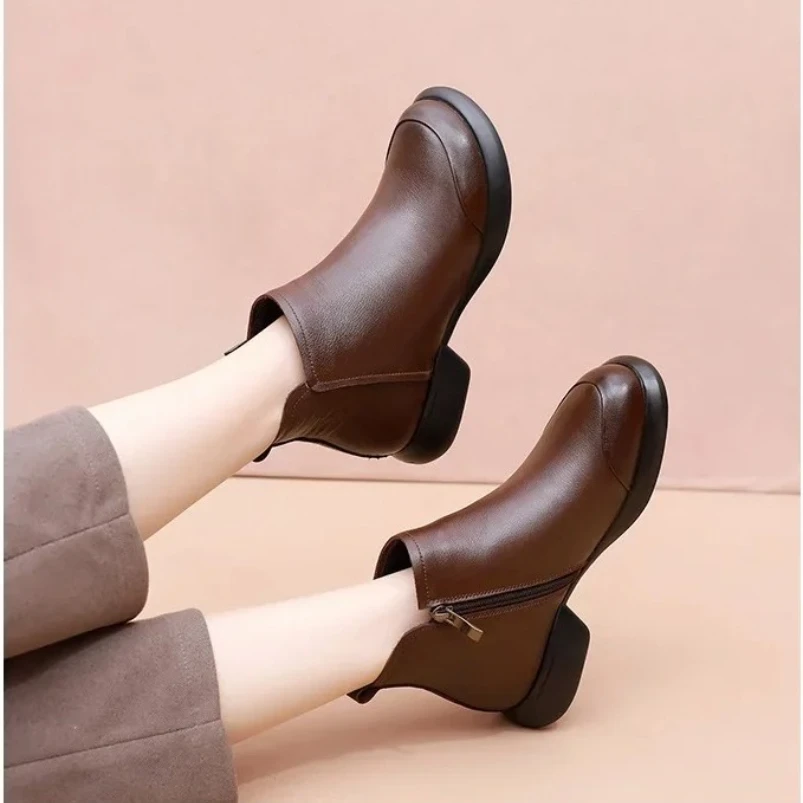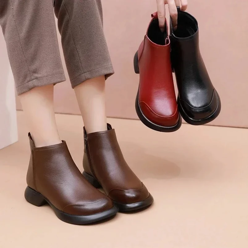 Ethnic Style Genuine Leather Cool Boots Top Layer Cowhide Breathable Mom's Sandals Women's Flat Heel Soft Sole Hollow Hole Shoes